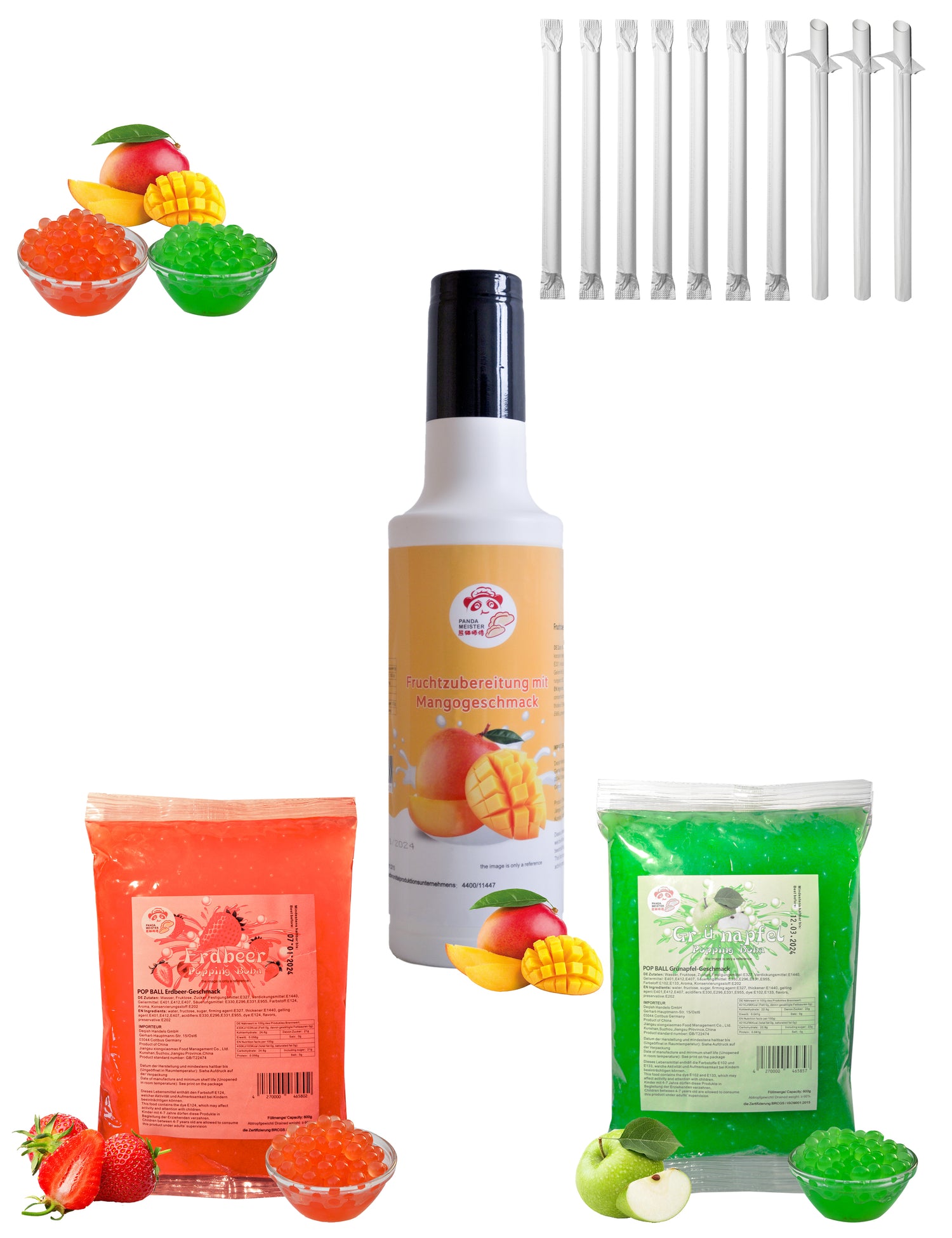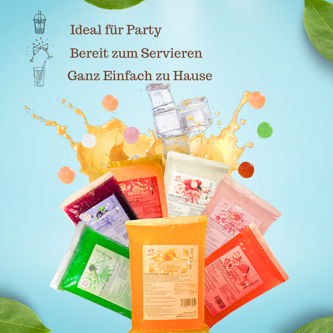 Bubble Tea Perlen Mango - Bubbletea Boba Perlen Set 3KG-Versandkostenfrei - Natur&Vegan -Selber Machen Bubble Tea DIY Partys