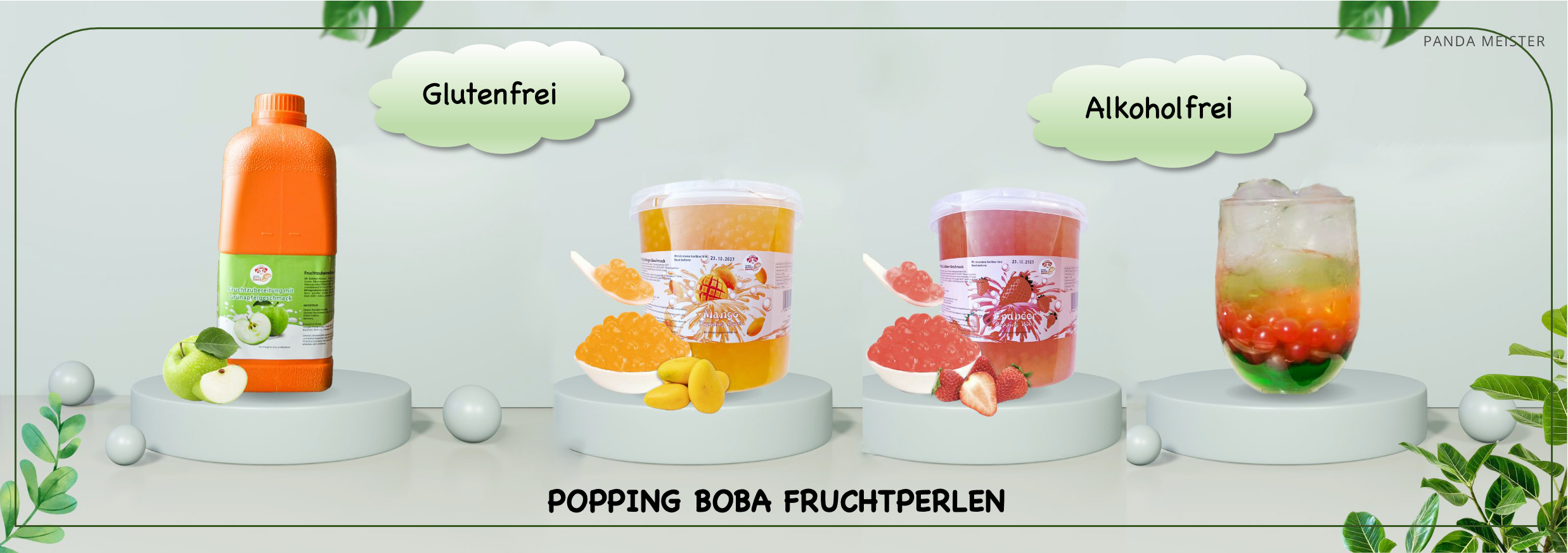 DIY Tipp: Einfach 30 bis 40 ml Fruchtsirup mit 300 bis 400ml Wasser oder Jasmin grüntee, Eis und Zuker dazu, ruhren/schutteln und fertig. Fügen Sie Popping Boba oder Perlen hinzu, damit es besser schmeckt.