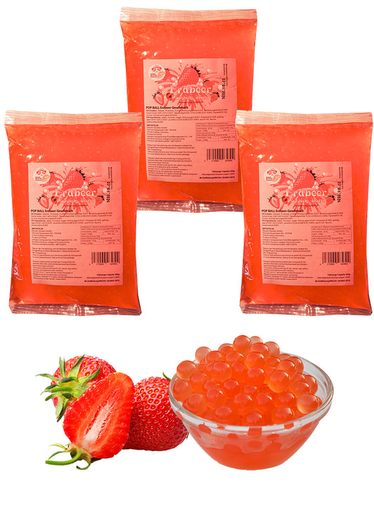 600g Bubble Tea Perlen Popping Boba - Erdbeere Fruchtperlen Bubbletea Perlen Set -* KURZ AKTION:1 Gratis 600g Pack pro BestellNr. * Natur&Vegan- Super Ideen zum Selber Machen Bubble Tea Topping für DIY