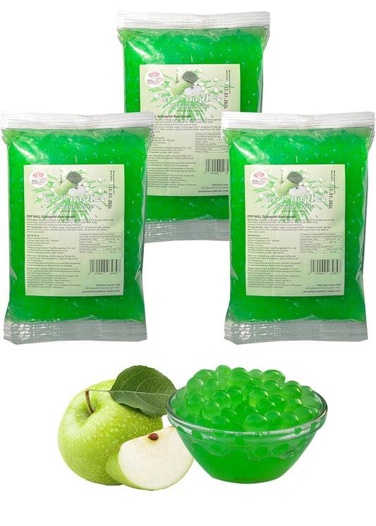 600g Bubble Tea Perlen Popping Boba - Apfel Fruchtperlen Bubbletea Perlen Set -* KURZ AKTION:1 Gratis 600g Pack pro BestellNr. * Natur&Vegan - Super Ideen zum Selber Machen Bubble Tea Topping für DIY