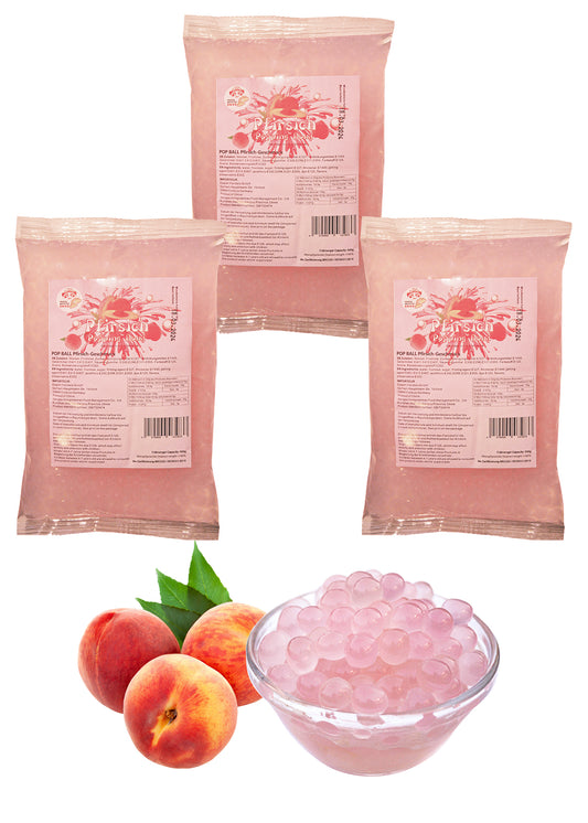 600g Bubble Tea Popping Boba - Pfirsich Fruchtperlen Bubbletea Perlen Set - Natur&Vegan * KURZ AKTION:1 Gratis 600g Pack pro BestellNr. * Super Ideen zum Selber Machen Bubble Tea Topping für DIY