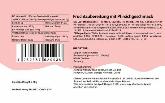 Konzentrat Fruchtsirup für Bubble Tee Lassi, Smoothie, Slush Getränkesirup 2,5kg - Pfirsich