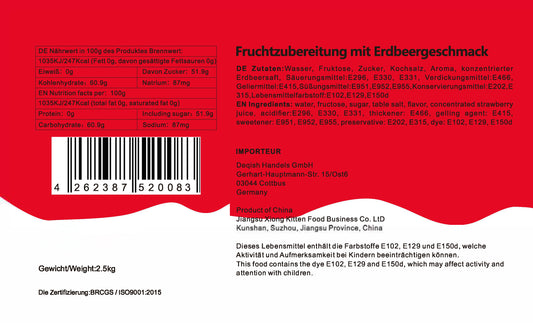 Konzentrat Fruchtsirup für Bubble Tee Lassi, Smoothie, Slush Getränkesirup 2,5kg - Erdbeer