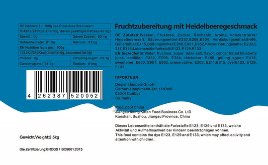 Konzentrat Fruchtsirup für Bubble Tee Lassi, Smoothie, Slush Getränkesirup 2,5kg - Blaubeer