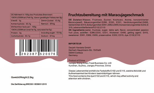 Konzentrat Fruchtsirup für Bubble Tee Lassi, Smoothie, Slush Getränkesirup 2,5kg - Maracuja