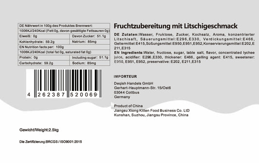 Konzentrat Fruchtsirup für Bubble Tee Lassi, Smoothie, Slush Getränkesirup 2,5kg - Litschi