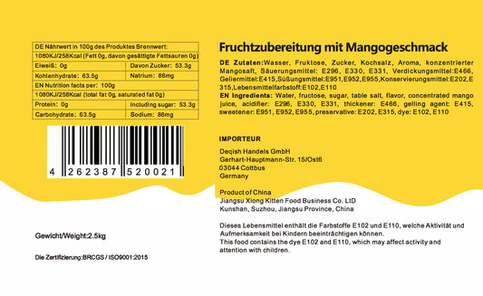Konzentrat Fruchtsirup für Bubble Tee Lassi, Smoothie, Slush Getränkesirup 2,5kg - Mango