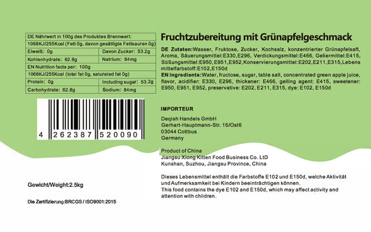 Konzentrat Fruchtsirup für Bubble Tee Lassi, Smoothie, Slush Getränkesirup 2,5kg - Grüner Apfel