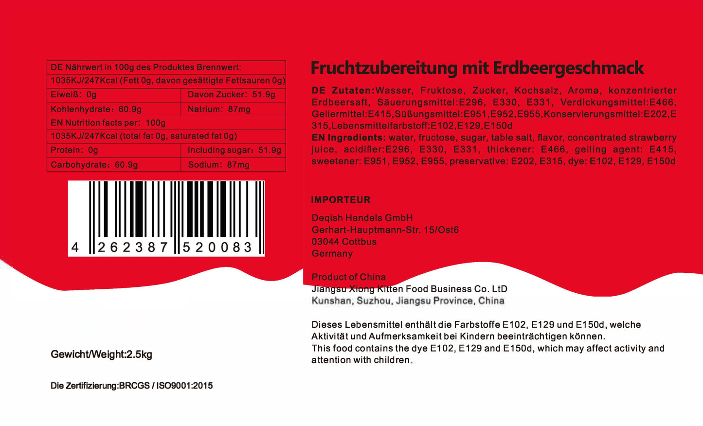 Konzentrat Fruchtsirup für Bubble Tee Lassi, Smoothie, Slush Getränkesirup 2,5kg - Erdbeer